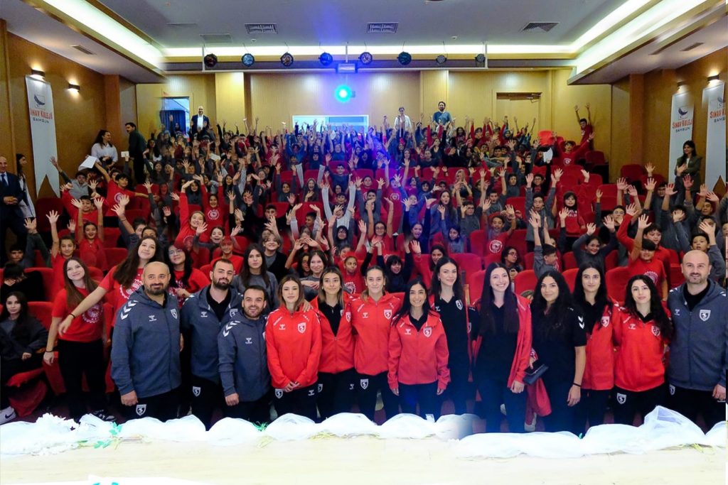 Öğrencilerle bir araya gelen sporcularımıza ilgi büyüktü. “Bu Şehrin Çocukları Samsunsporludur!” mottomuzu en iyi şekilde hissettiğimiz ziyarette yöneticilerimiz ve takımımız, öğrencilerimizle söyleşi gerçekleştirdi. Okulda sergilenmek üzere Samsunspor Futbol takımımızın ve Voleybol takımımızın imzalı formaları armağan edildi.